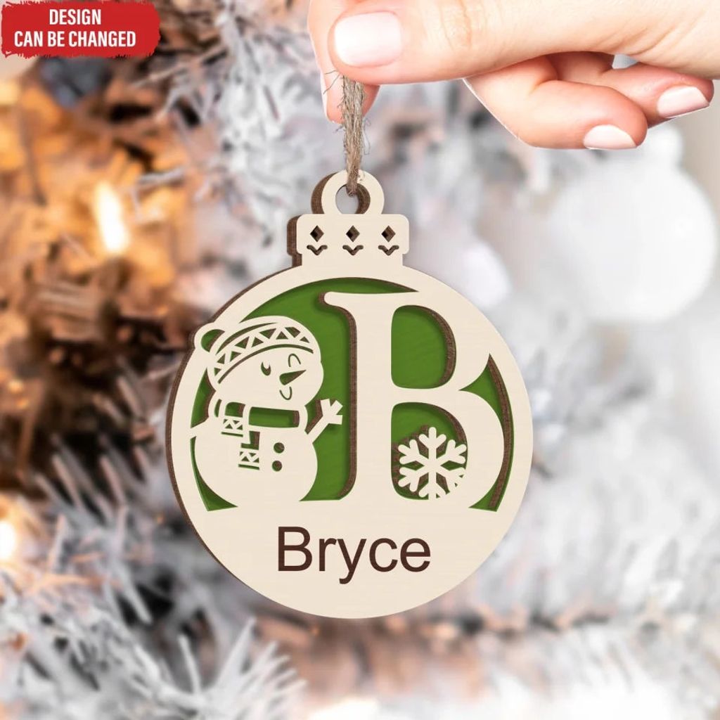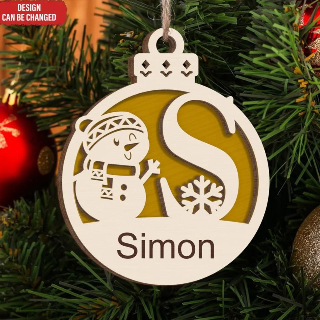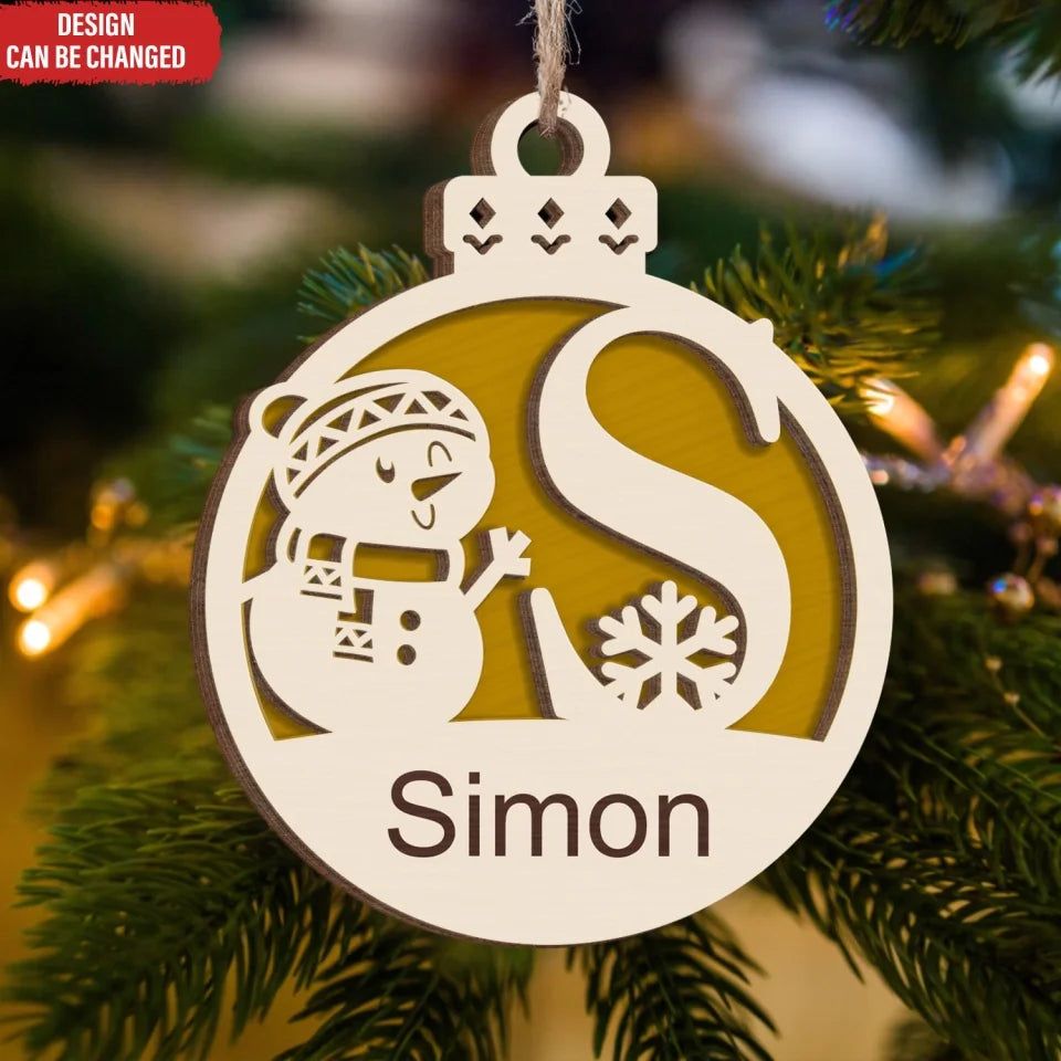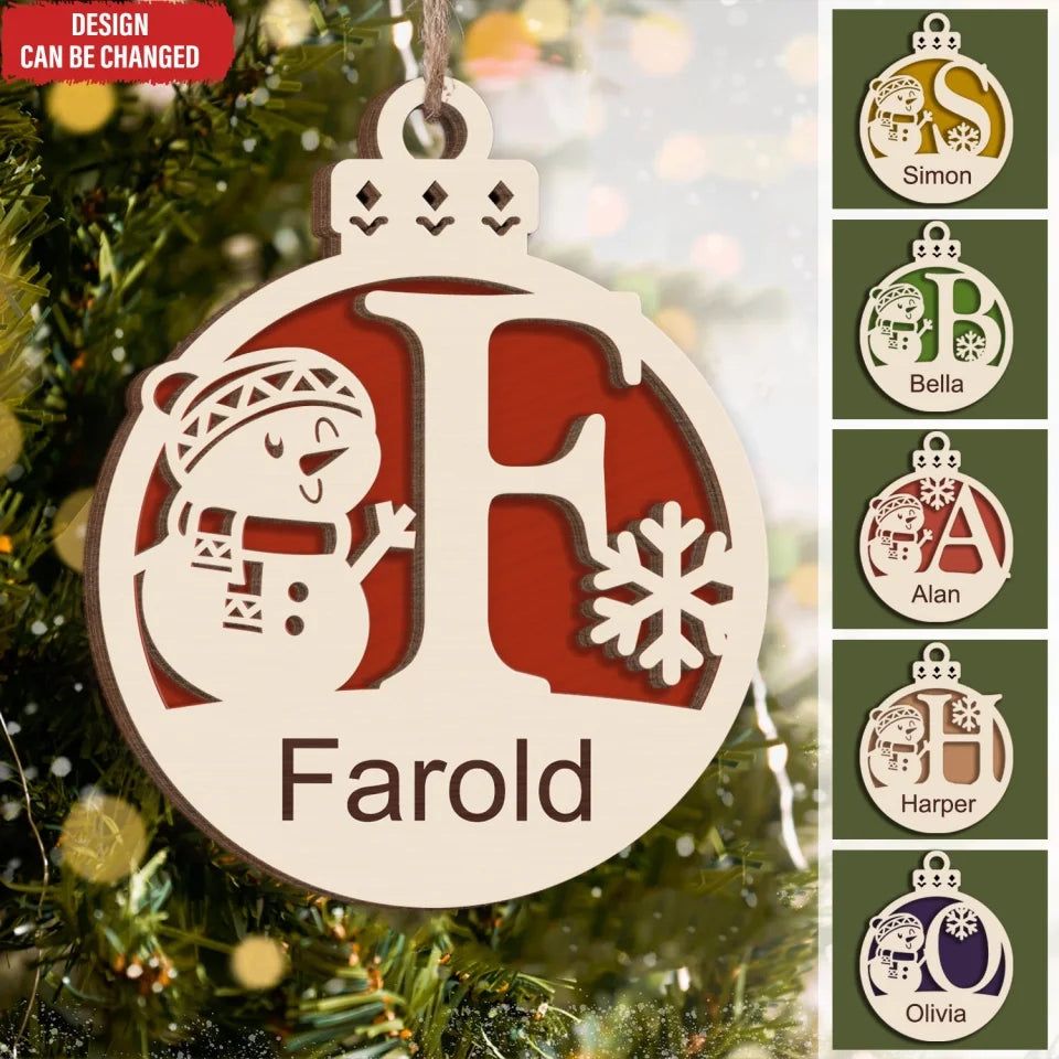 Christmas Snowman Monogram Gift For Christmas - Personalized 2 Layer Wooden Ornament, Christmas Tree Decor - ORN248AN