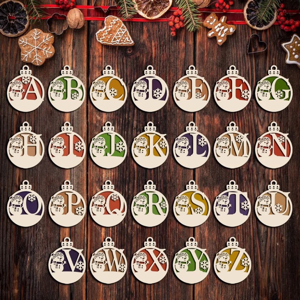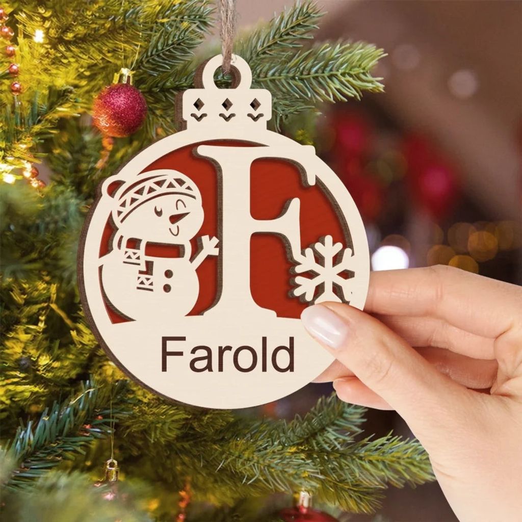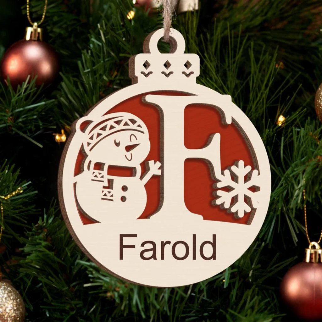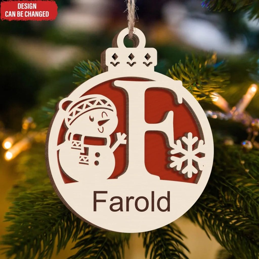 Christmas Snowman Monogram Gift For Christmas - Personalized 2 Layer Wooden Ornament, Christmas Tree Decor - ORN248AN
