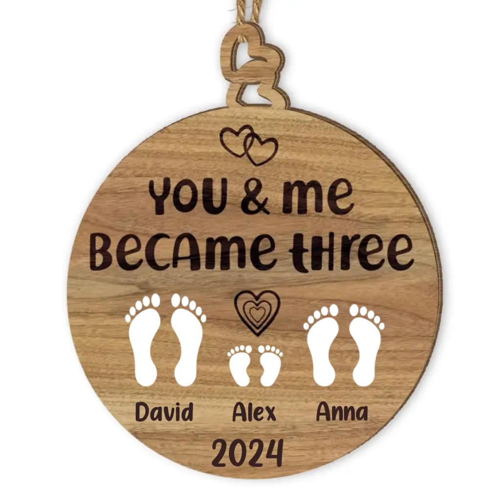 You and me became three. custom new baby ornament. First Baby Ornament. First baby ornament. Family ornament